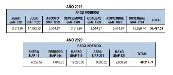 El informe señala que Luis Trelles “no es trabajador administrativo ni docente del ámbito de la UGEL Ayabaca”, sin embargo entre los meses de junio y julio del 2019 recibió pagos por un monto total de S/ 54,497. Lo mismo ocurrió entre los meses de enero y mayo de este año, cobrado hasta S/48,217.