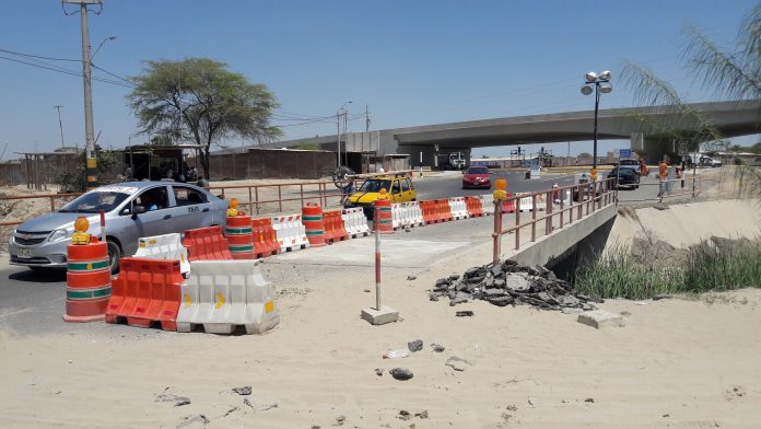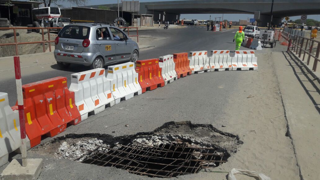 La semana pasada, mientras el ministro de Transportes, Bruno Giuffra, inauguraba la vía de Evitamiento se advirtió un enorme forado en el puente de acceso a La Legua.