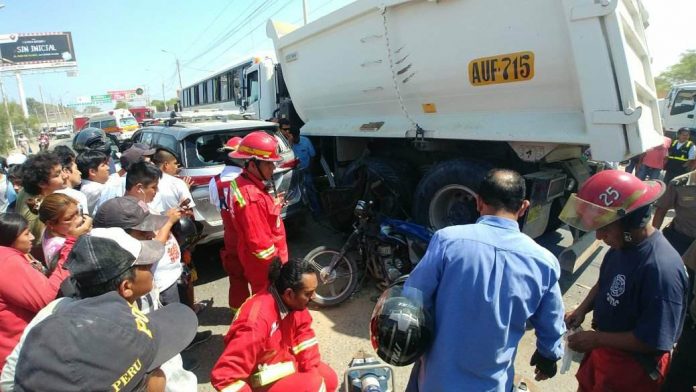 Un terrible accidente se ha producido pasada la una de la tarde en la intersección de las avenidas Sánchez Cerro con Chulucanas, a la altura de la tienda de Maestros en la ciudad de Piura.