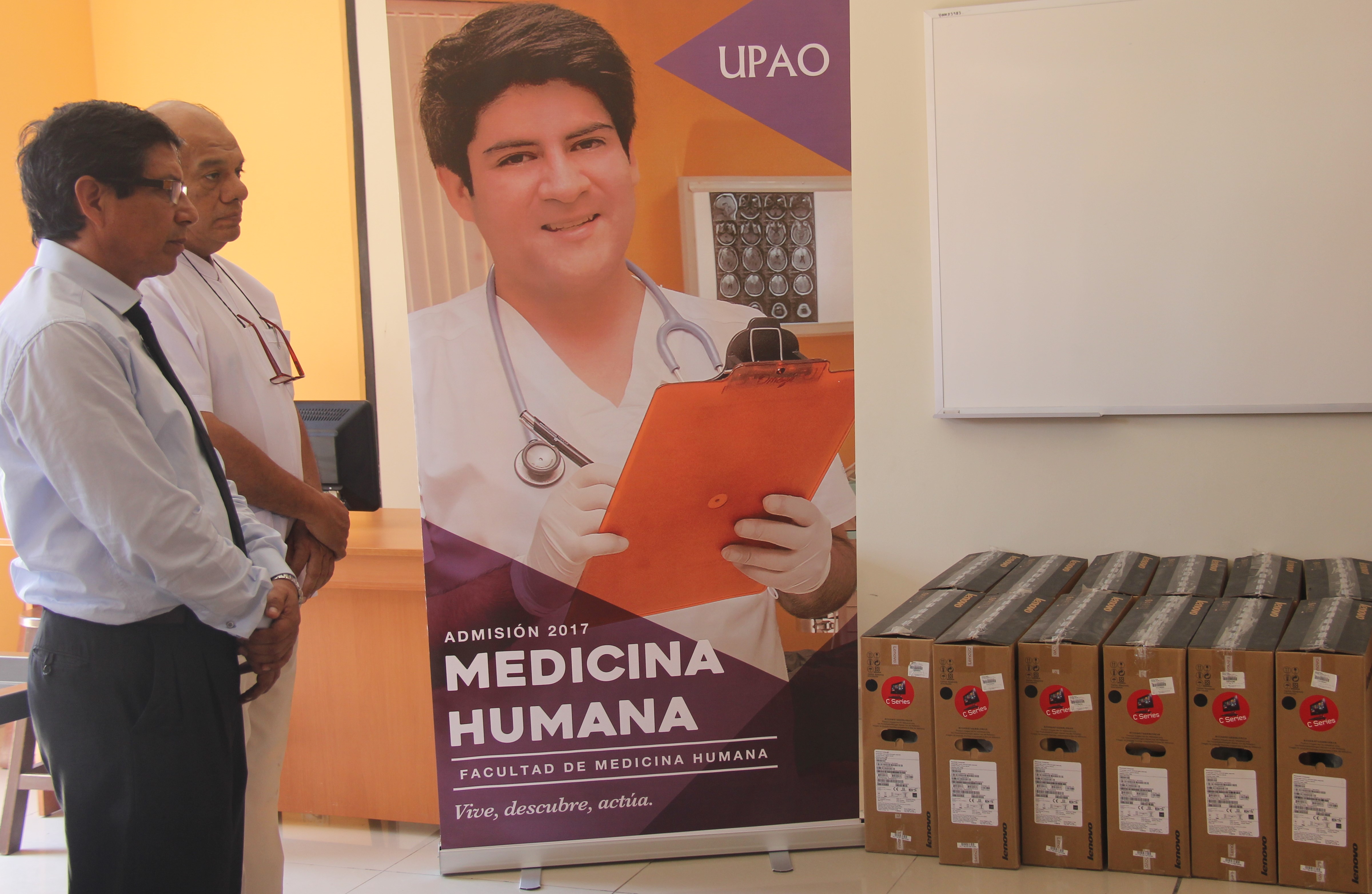 La escuela de Medicina Humana de la Universidad Privada Antenor Orrego (UPAO) – Piura, entregó 20 computadoras marca LENOVO, en calidad de cesión de uso, al hospital Santa Rosa, ubicado en el distrito Veintiséis de Octubre.