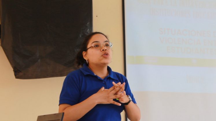 Por esta razón, el profesorado se reunió en grupos para analizar un caso de violencia. Asimismo, las y los docentes dramatizaron estas situaciones problemáticas con mucha destreza. Finalmente, presentaron una solución adecuada según el caso de violencia.