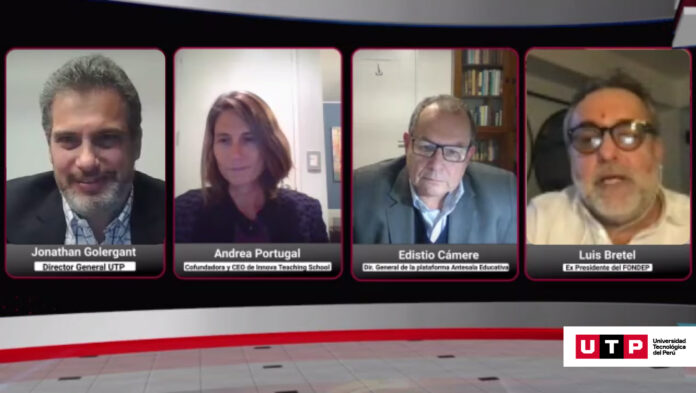 La Universidad Tecnológica del Perú (UTP) realizó el VIII Encuentro Nacional de Directores, con la participación de Luis Bretel, expresidente del Fondo Nacional para el Desarrollo de la Educación Peruana (Fondep), y Edistio Cámere, director general de la Plataforma Antesala Educativa. Además, como panelistas estuvieron presentes Andrea Portugal, cofundadora y CEO de Innova Teaching School, y Jonathan Golergant, director general de la UTP.