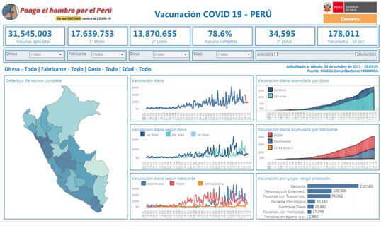 Según el Repositorio Único Nacional de Información en Salud (Reunis), un total de 13 870 655 de ciudadanos completaron su esquema de vacunación contra el coronavirus SARS-CoV-2.