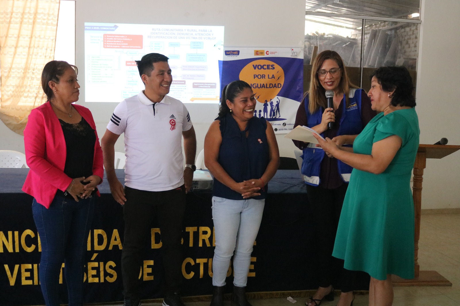 El equipo técnico de Cutivalú -a través del proyecto Voces por la igualdad- socializó la propuesta de Protocolo Base de Actuación Conjunta (PBAC) a nivel comunitario con la Instancia distrital para prevenir la violencia de género y la Municipalidad de Veintiséis de Octubre (VDO).