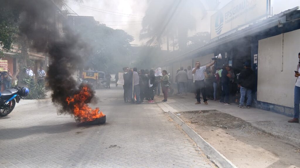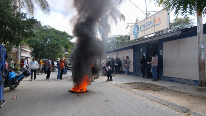 La manifestación incluyó la quema de llantas y el bloqueo de los exteriores de la empresa, lo que obligó a la presencia de la Policía. Entre gritos y carteles, los moradores reclamaron la atención inmediata de los funcionarios de EPS Grau, a quienes responsabilizan de la situación actual del servicio.