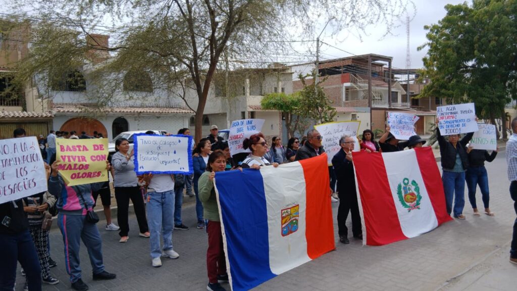 Vecinos de Villa Hermosa, en el distrito Veintiséis de Octubre, protestaron este lunes en la sede de EPS Grau para exigir una solución definitiva al colapso de desagües que, desde hace años, expone a la población a malos olores, aniegos y riesgos para su salud.