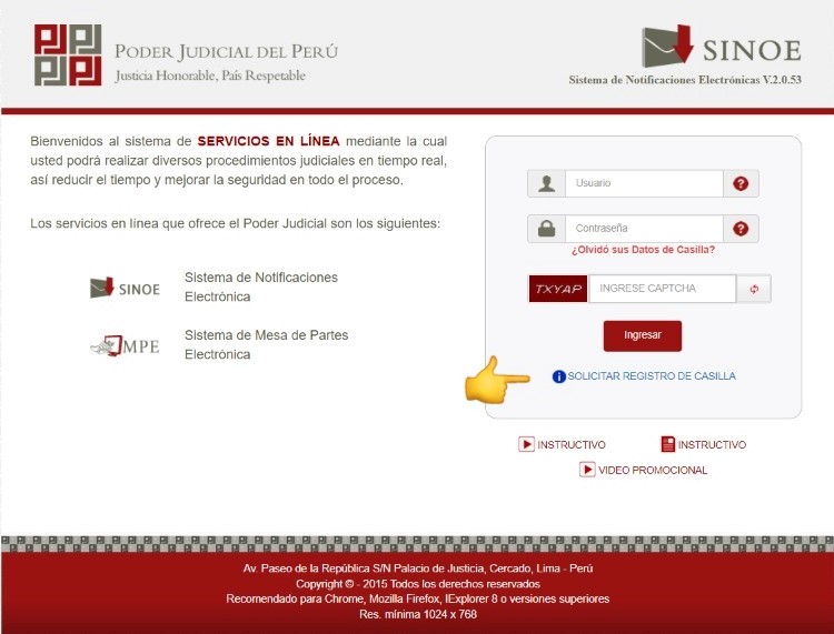 Desde el Poder Judicial, la Lic. Mabel de Rocío Sandoval Aquino y Lic. Astrid Torres Morales explicaron cómo obtener una casilla electrónica desde la web del Poder Judicial, solicitando el registro de casilla para luego llenar con los datos correspondientes el registro.
