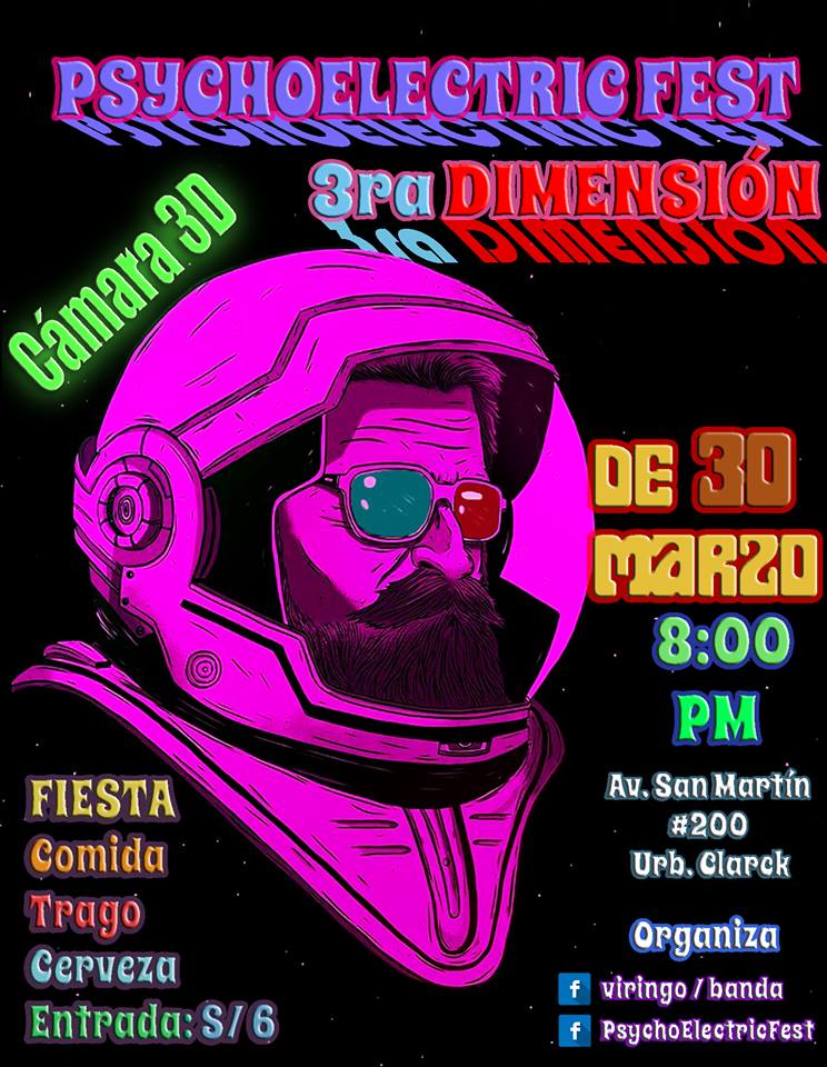 En esta nueva edición “PsychoElectric Fest 3ra Dimensión”, Viringo trae la “cámara 3D”, un espacio diseñado dentro de la fiesta para observar imágenes en 3D, con lentes que se entregarán en el evento y junto con la música brindarán a los asistentes una experiencia sensorial que vale la pena disfrutar.