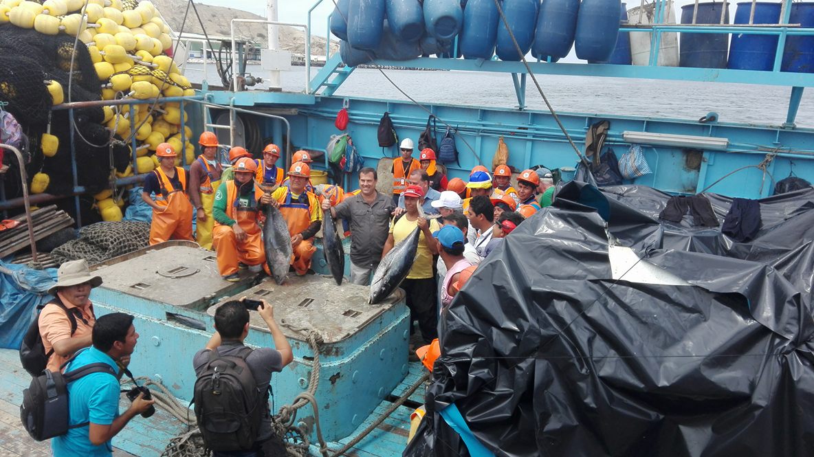 El ministro de la producción, Bruno Giuffra, supervisó la descarga en Paita junto a la presidenta de la Sociedad nacional de pesquería, Elena Conterno. “Es una excelente noticia porque va a dinamizar la industria conservera vinculada al atún”, opinó el ministro de la producción sobre la descarga de atún en Paita después de 10 años.